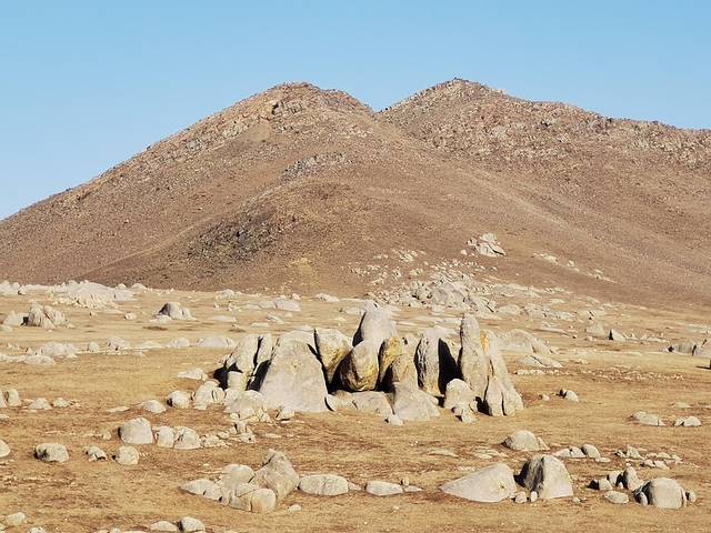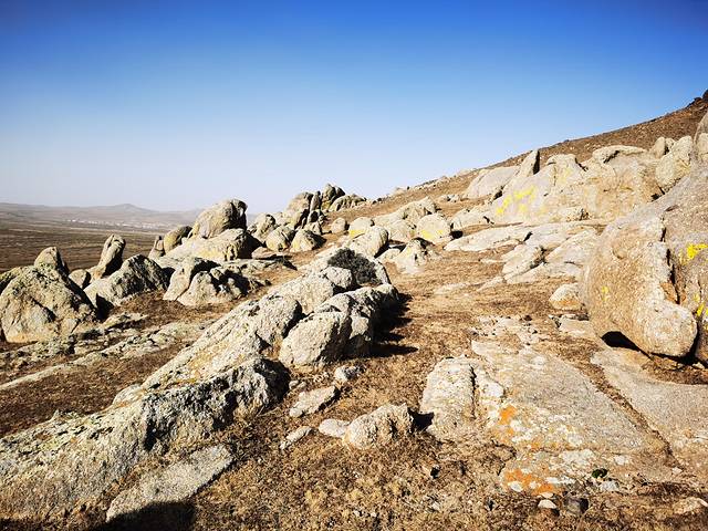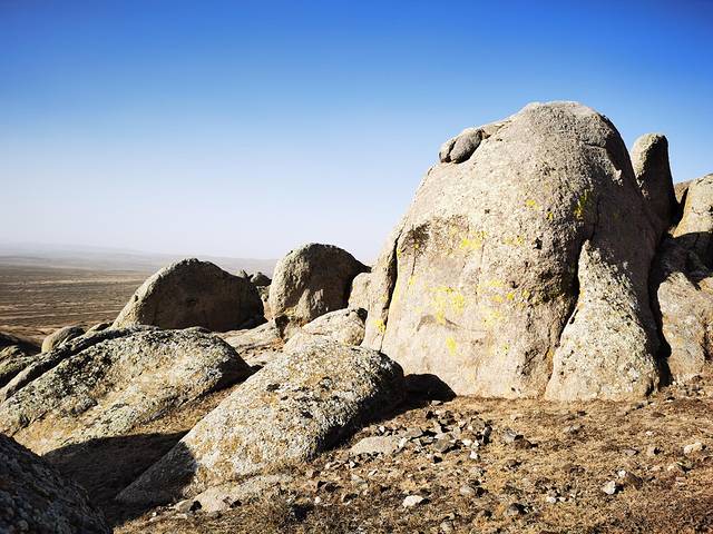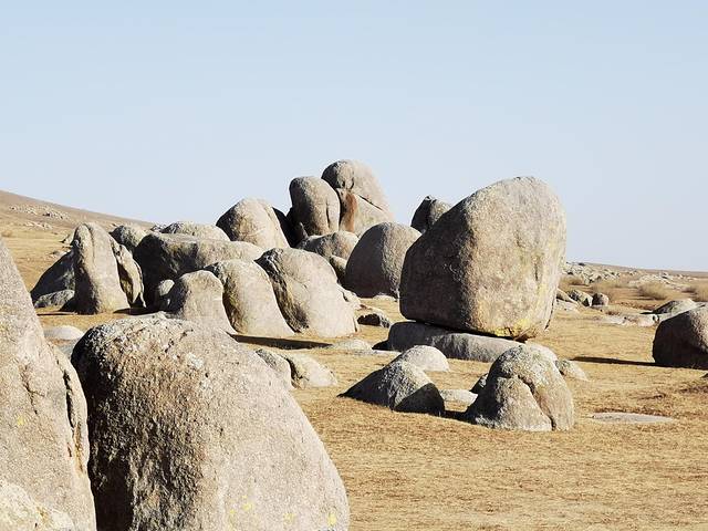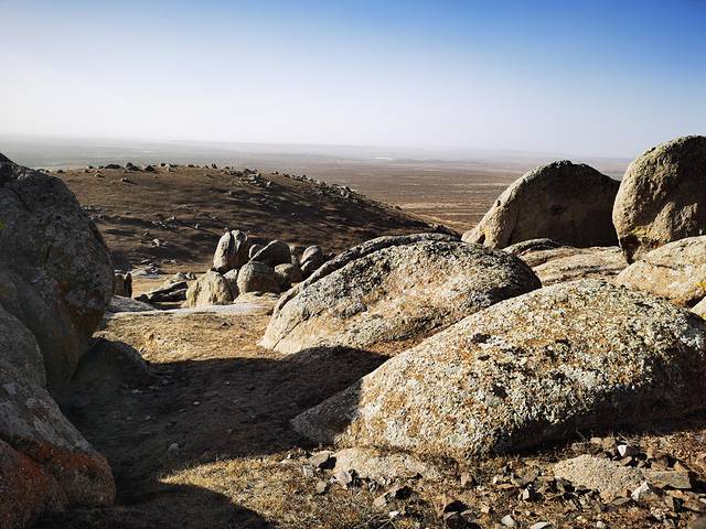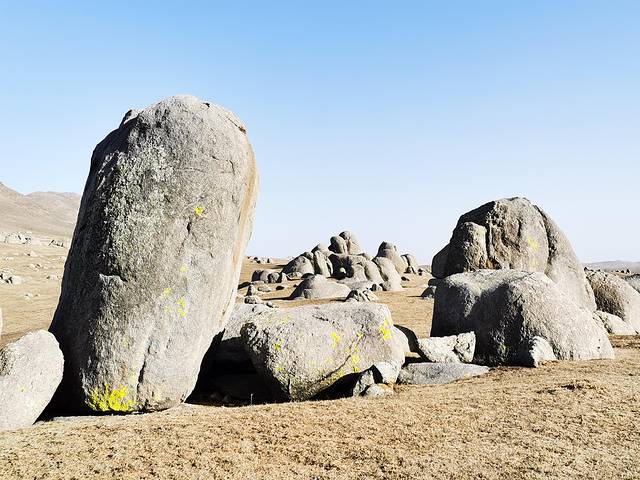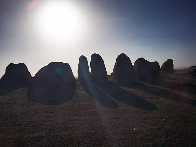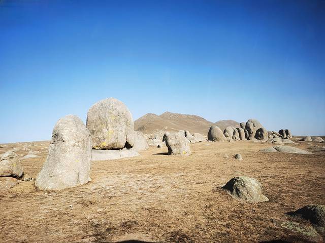 乌兰哈达石阵群属冰川遗迹,石群平地而起,形态各异,山顶视野宽阔,是拍日落的好地方,但是风大且冷我们不宜久留。