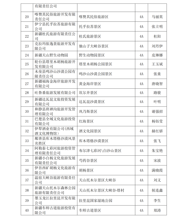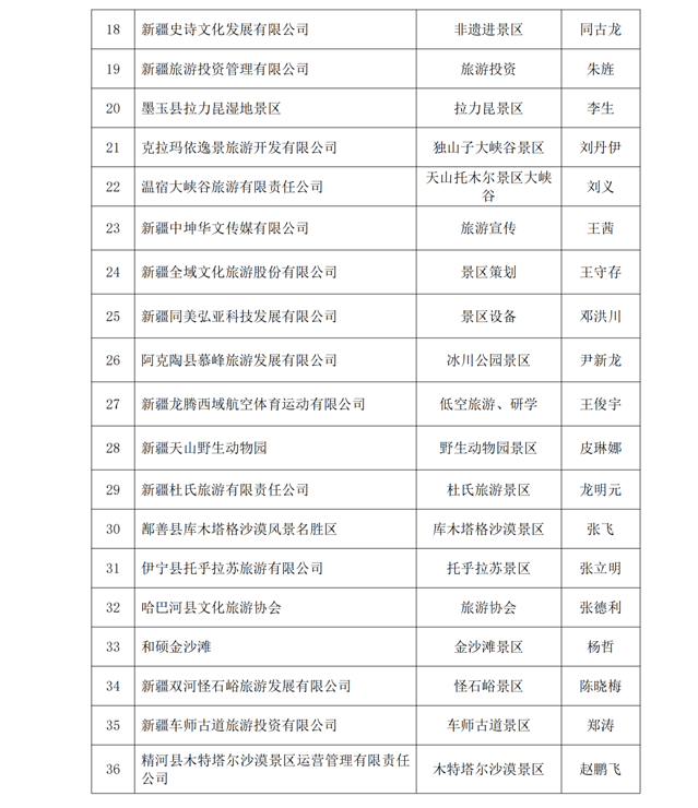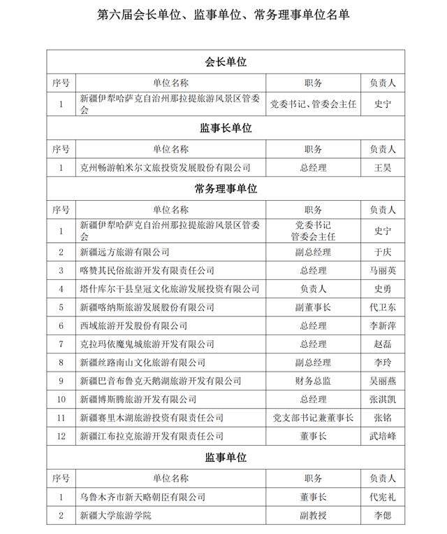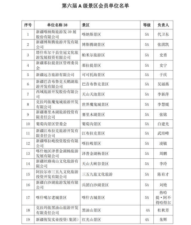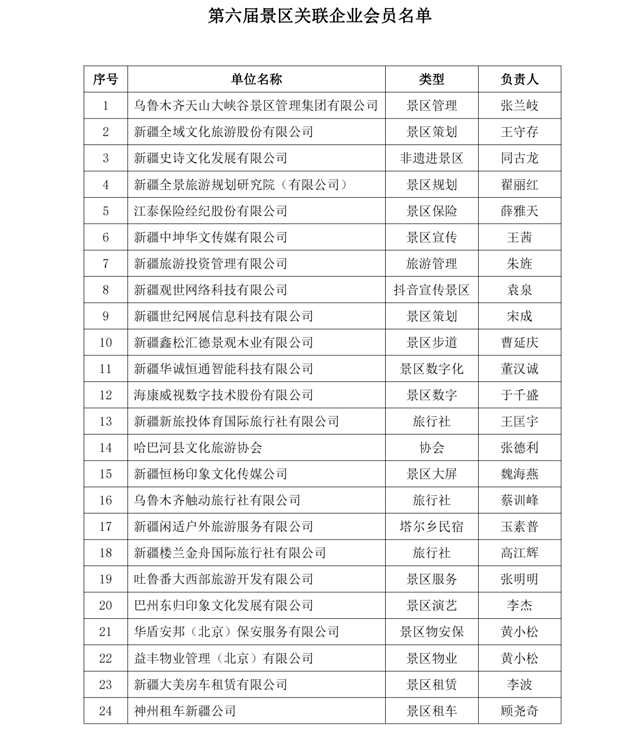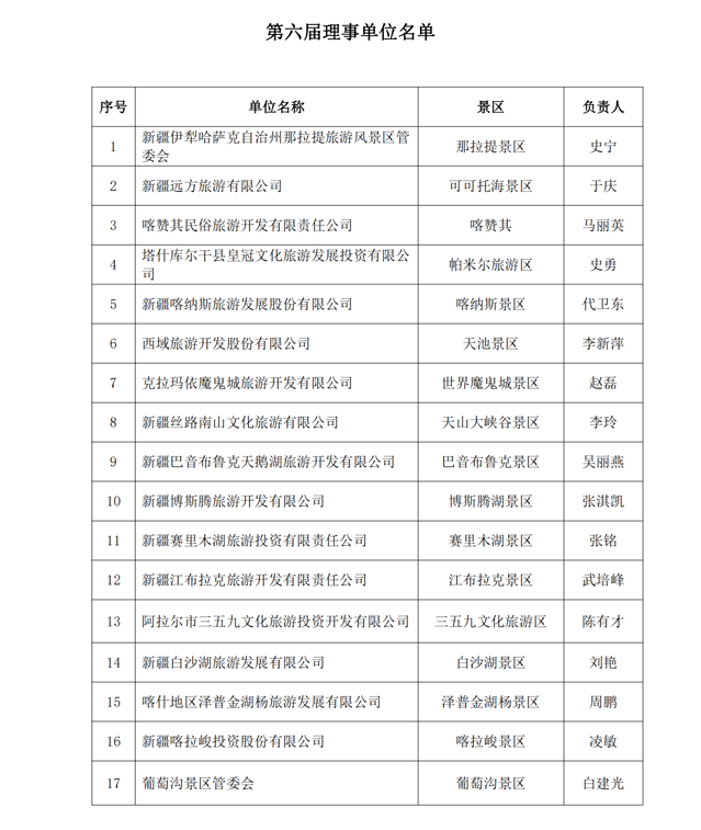 ✦•✦附新疆旅游景区(点)协会第六届会员名单: