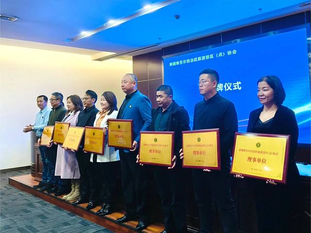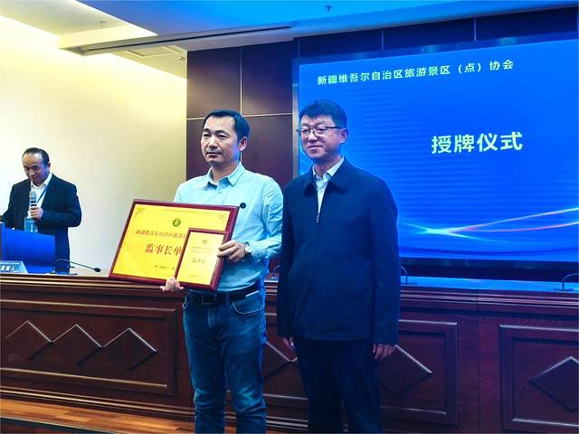 在全场热烈的掌声中,自治区民政厅领导为帕米尔文旅颁发了监事长单位的荣誉牌匾。这一时刻不仅是对帕米尔文旅过往成就的高度认可,也是对其未来工作的巨大激励和支持。它标志着帕米尔文旅将在新一届协会中扮演更为重要的角色,肩负起推动新疆旅游行业向前发展的重任。让我们携手并进,共创新疆旅游的美好未来!
