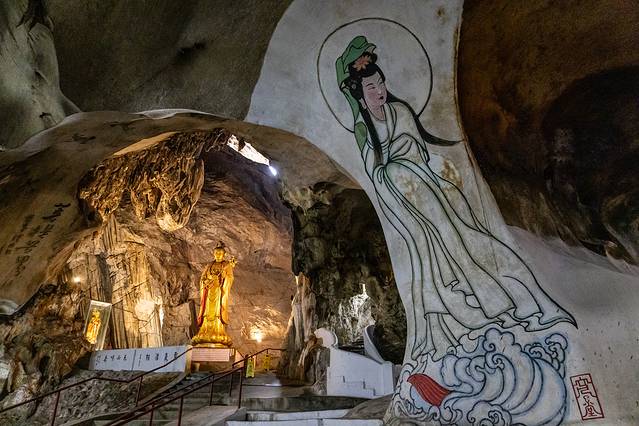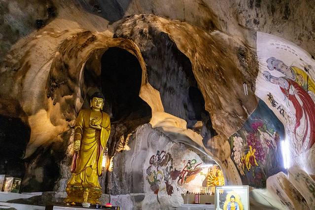 怡宝周围群山环绕,除了霹雳洞还有极乐洞三宝洞、南天洞可以玩。霹雳洞依山而建,是一个长122米左右的石灰岩溶洞。据说它是1926年由一位中国居士发起修建的。洞前建有崇楼峻阁,一座巍峨的龙头楼耸立于中央,四周中古木参天。洞中石径回旋,连接着大大小小十来个洞窟。正洞中供奉着释迦牟尼坐像,高13米,洞内崖壁上有壁画百余幅,画有十八罗汉及唐三藏西天取经图等等。另有佛像四十多尊,内洞钟乳石千姿百态,石阶通向上部,沿着一缕光线可出此洞,远眺城市。