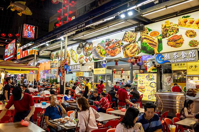 著名大排档美食街,游客多价格偏贵,和国内一线城市消费差不多,特色食物👉🏻烧鸡翅、葡萄牙烧鱼、炒裸条、 罗惹、沙爹、尤鱼蓊菜、猪肉粥、亚三叻沙、药材炖汤、海鲜点心、肉骨茶