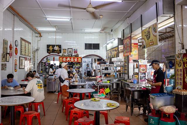 南香白咖啡 我们的午饭在这里吃的,物价感人,比吉隆坡便宜了好多,像大排档一样茶餐厅,给人一种穿越感,人均10-15块能吃到好吃的芽菜鸡、猪肠粉、鸡丝河粉、咖喱粉等特色美食,猪肠粉吃上去软软弹弹,配冬菇汁非常美味。店里的仙草豆浆也是一绝,2.5马币一杯,解暑又降火。点的餐都是现场炒,大锅大灶的烟火锅气非常的迷人。