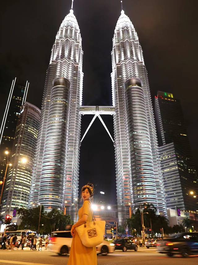 看到双子塔的那一刻才真正感觉自己来到了这个国家。作为吉隆坡的标志性建筑,从不同的角度观察这两座高耸入云的大楼,给人带来的视觉感受是截然不同的。它也被称为“石油双塔”,高达 88 层,总高度为 452 米,一对一模一样大厦并肩耸立,中间有栈桥相连,双子塔的外观大量使用了不锈钢和玻璃材质,在阳光下闪烁着耀眼的光芒。当夜幕降临,双子塔的灯光璀璨夺目,冷峻的光芒为整个城市增添了一份魔幻的科技感。
