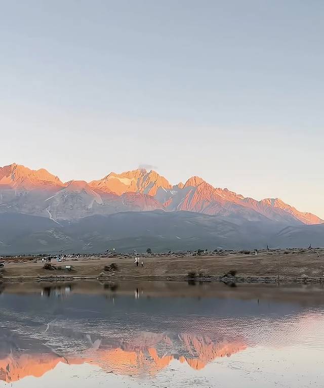第二天见到万里无云的日照金山11月18日 上午7:35 在丽江东巴谷太阳升起 点燃雪山照亮蓝天