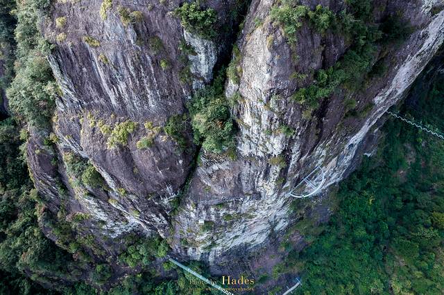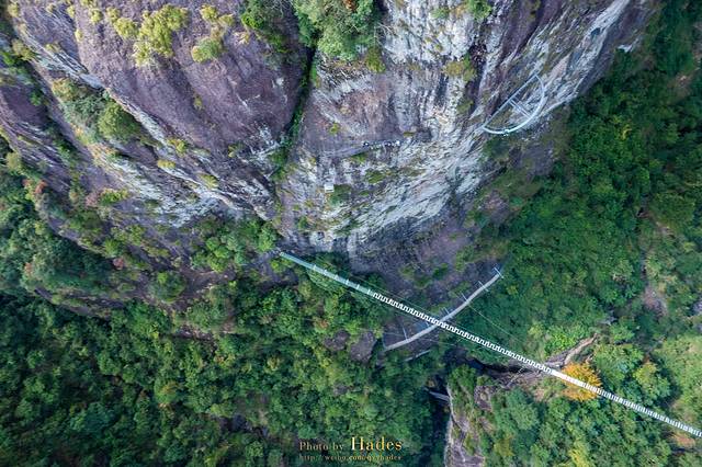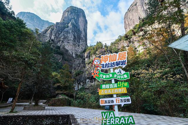 神仙居景区内的飞拉达攀岩分一期和二期两部分,一期高度较低,难度不大,二期需要通过玻璃桥穿过峡谷,然后徒手攀登悬崖峭壁,刺激非常。
