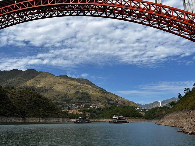 下午游览神女溪,乘坐游船沿着神女溪缓缓而上。神女溪的水清澈见底,溪中的鱼儿自由自在地游弋着。两岸的山峰高耸入云,植被茂密,不时有瀑布从山上倾泻而下,形成一道道美丽的水帘。在游船上,导游会唱起当地的民歌,悠扬的歌声在峡谷中回荡,让人心旷神怡。