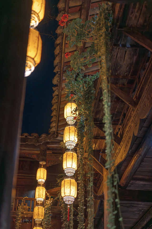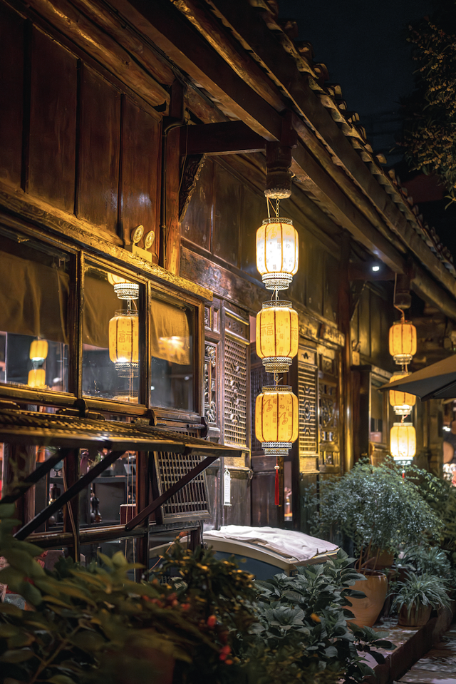 夜晚的古城也被柔和的橘黄色灯光轻轻笼罩,沿街的古建轮廓在昏黄的灯光下更显庄重,飞檐翘角勾勒出了一幅幅古老的剪影,这些是在白天绝对看不到的,再一次印证了我们留对了。