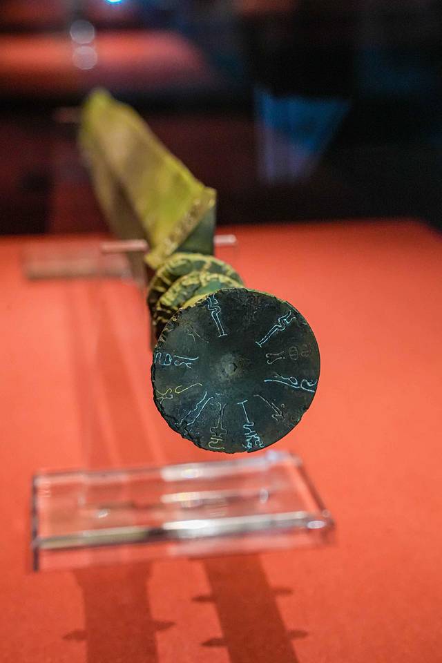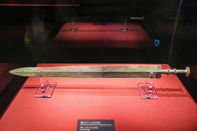 来到博物馆,一定不能错过其镇馆之宝。越王丌北古剑,剑身镌刻鸟篆铭文,仔细看,剑柄上镶嵌着精细的错金纹饰,可以看出当时铸造工艺已经十分精湛,真不愧是镇馆之宝!当然,这里每一件文物都是安庆历史文化的积淀,它们身上的每一道划痕、每一抹色彩,都是时间的笔触,在无声中勾勒出一幅幅波澜壮阔的历史画卷。