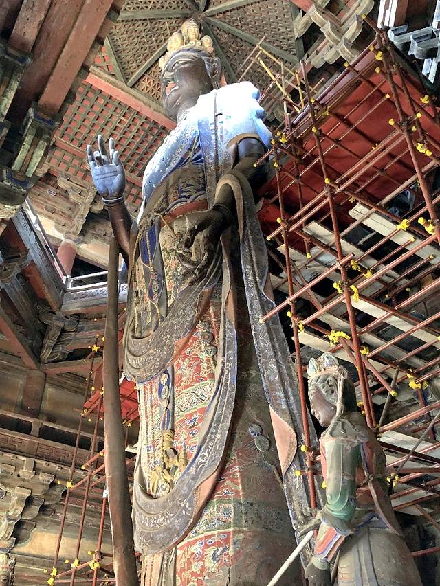 大殿上的藻井、四周复杂的斗拱,让人看着眼花缭乱,同时也深感该建筑的高超技艺。