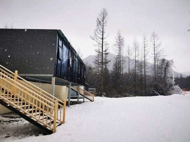 山居民宿真的算的上是背靠雪山,四周是广阔的平地,像是一座在雪地里拔地而起的房子,不仅让你360度赏雪,超大的落地窗还能“睁眼即是雪”。而且位置就在大坝滑雪场旁,喜欢滑雪的正好住在这里。