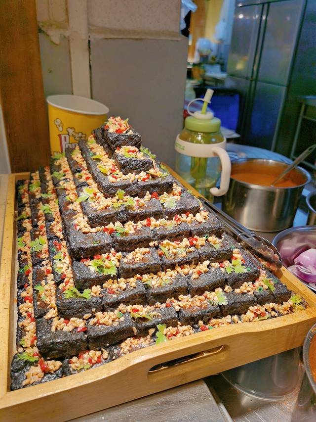 3- 包浆豆腐:豆腐外皮微焦,内部嫩滑如浆,豆香浓郁,配上辣椒面等调料,口感丰富 。