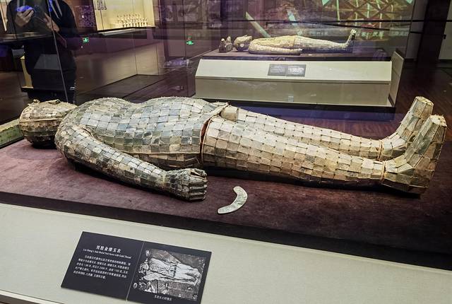刘胜金缕玉衣。玉衣全长1.88米,共用玉片2498片,金丝约1100克,是迄今为止发现的保存最完整的金缕玉衣。