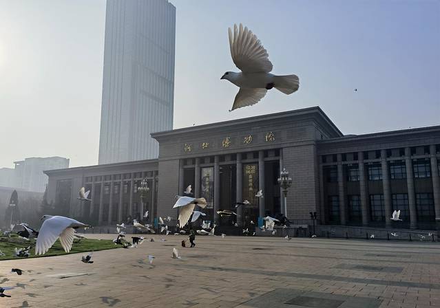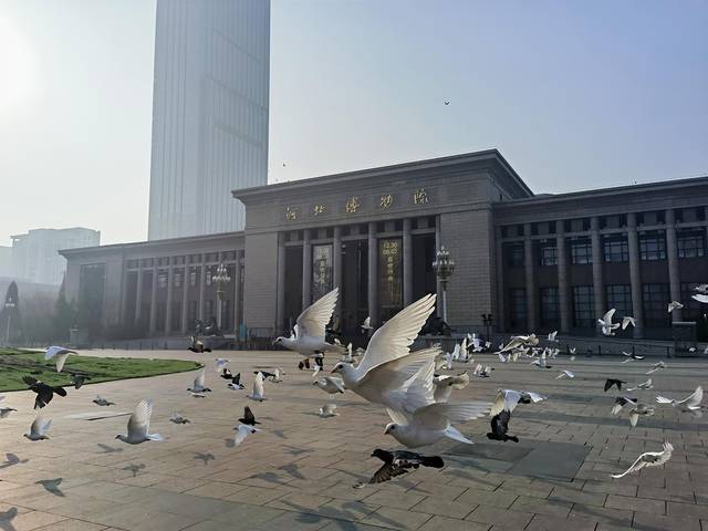 博物院开门之前,广场上好多鸽子在飞,抓拍了几张。