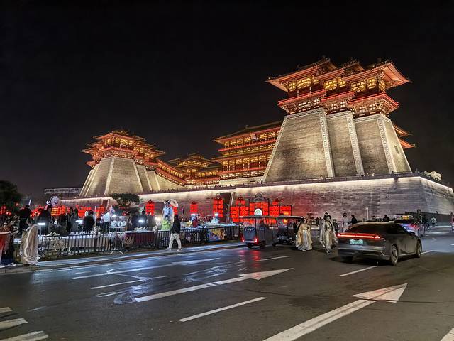 十一月份到此不冷不热,大街到处都是游客,景区里穿古装等打卡拍照的更是络绎不绝。如果时间不赶,体验一下他们这的电驴三蹦子出行也是很不错的选择(我们去应天门的路上给人家坐没电了……)。