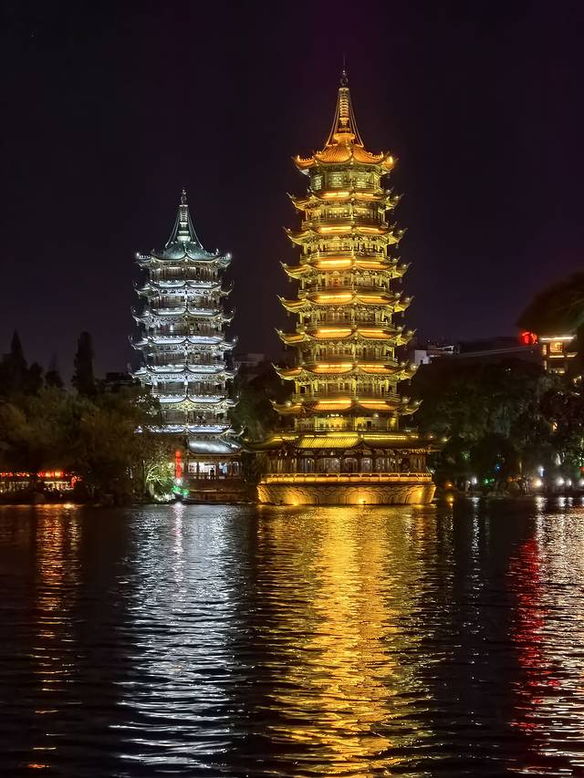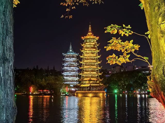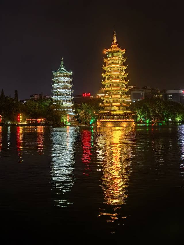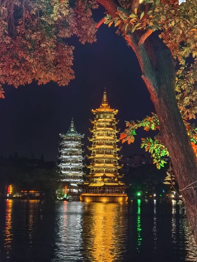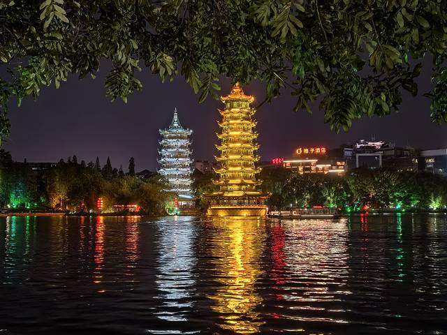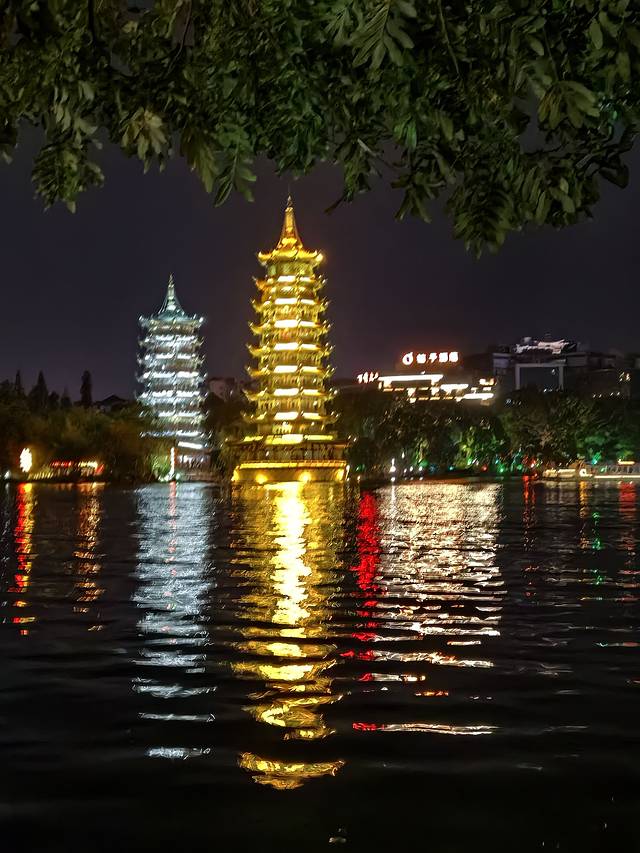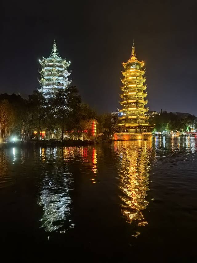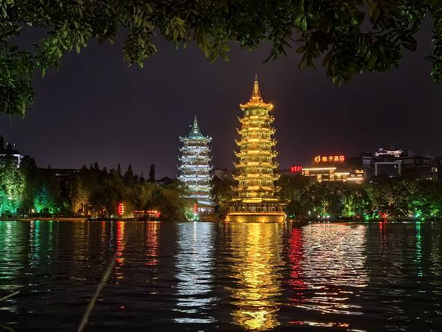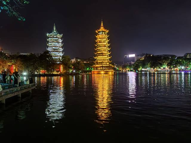 从逍遥楼出来发展桂林可以骑小电动,于是我和搭子骑了一台小电动,直奔日月双塔公园