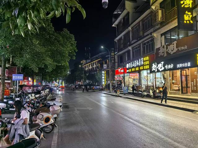 白天车子不能通过,晚上七点以后就可以了。骑车游逛比较快……