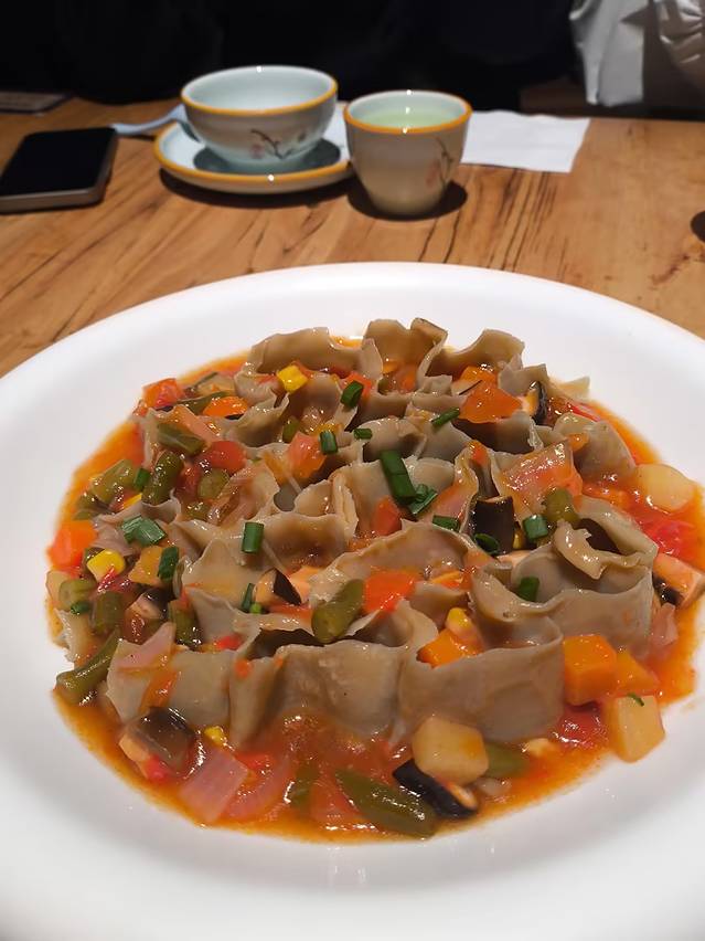八宝栲栳栳:独特的莜面香气加上西红柿等食材的浇汁点缀,既有莜面的劲道爽滑,又有酱汁的酸甜鲜美没有哪个食客能抵挡这样的美味!
