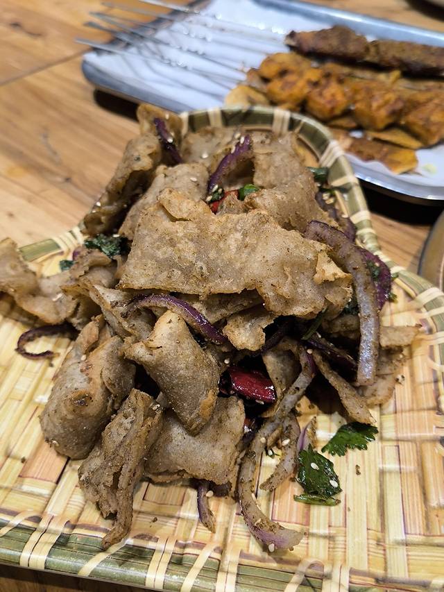 铜火锅又叫旱火锅,不同于一般火锅,炭火炖煮更鲜更香。老赵家特别实惠,铜锅里满满当当堆积着各种食材,土豆、烧肉、丸子、粉条、豆腐、红薯等,散发着诱人的香味,在门外就闻到啦,太香啦!火锅伴侣-烧烤也是必不可少的,几个朋友相约一起,逛完古城后吃着铜火锅侃大山,这日子别提多悠闲了