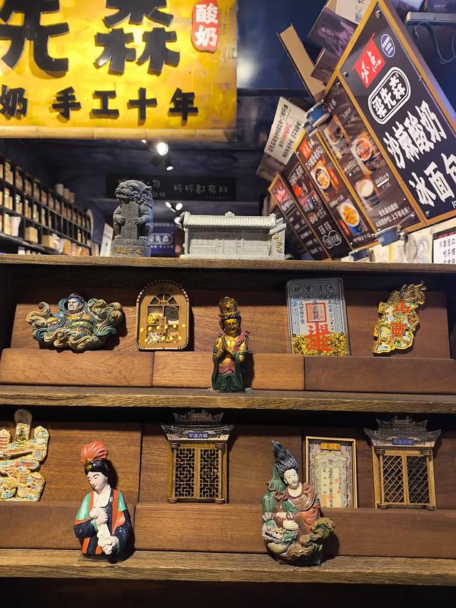 平遥 酸奶认准梁先森品牌,古城内开了12年的的酸奶店,老板是沙棘酸奶和老陈醋酸奶的创始人,口味有保障。店内装修很文艺,很多游客会把愿望留在这里~他家很戳我的一点还有各种伴手礼,醋糕、奶酪很适合带给家人和小孩子,瓦当和各种平遥元素的冰箱贴很适合送闺蜜朋友~
