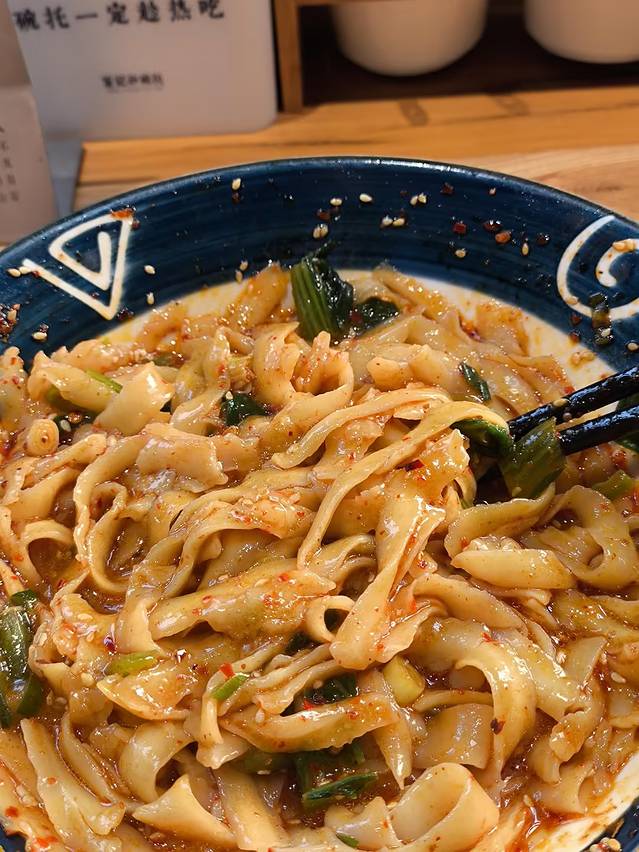 油泼面:面很劲道,油泼后的面条被热油包裹,入口顺滑,热油又能激发出调料的香味,香味扑鼻