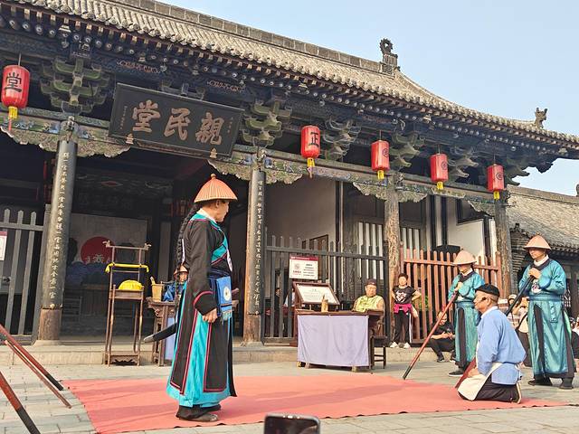 县衙还有一个最大的特色就是升堂表演啦。在 平遥 古城的 古县 衙大堂前,游客每天都会看到这样的表演,一位“县令”操着抑扬顿挫的北方音腔升堂断案,“和谐社会”、“双规”等现代热词不时“穿越”到表演现场,引得围观群众哄然大笑。那干练睿智的断案技巧、抽丝剥茧式的缜密推理,令人为之击节叹服。尽管这样的情景时常变换,但清政为民、惩恶扬善却是每场表演不变的主题。买了通票就可以看,不用单独买票。