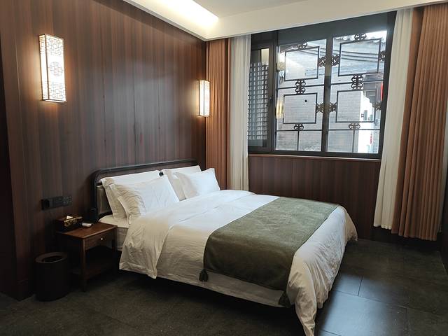 在我心目中就是古城里的花间堂,院落是明清风格,房间是现代风格,属于是古今结合,装修特别合我心意,软软的床褥、全屋智能家居 比如 马桶、窗帘等、干湿分离,还配有冰箱,茶包,浴缸好一些很有情调的小摆件,整体就很上档次
