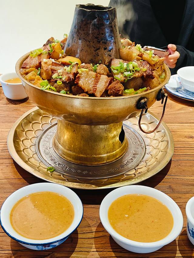 牛肉铜火锅:牛肉特别鲜嫩,量也多,蘸上秘制蘸料真的绝绝子