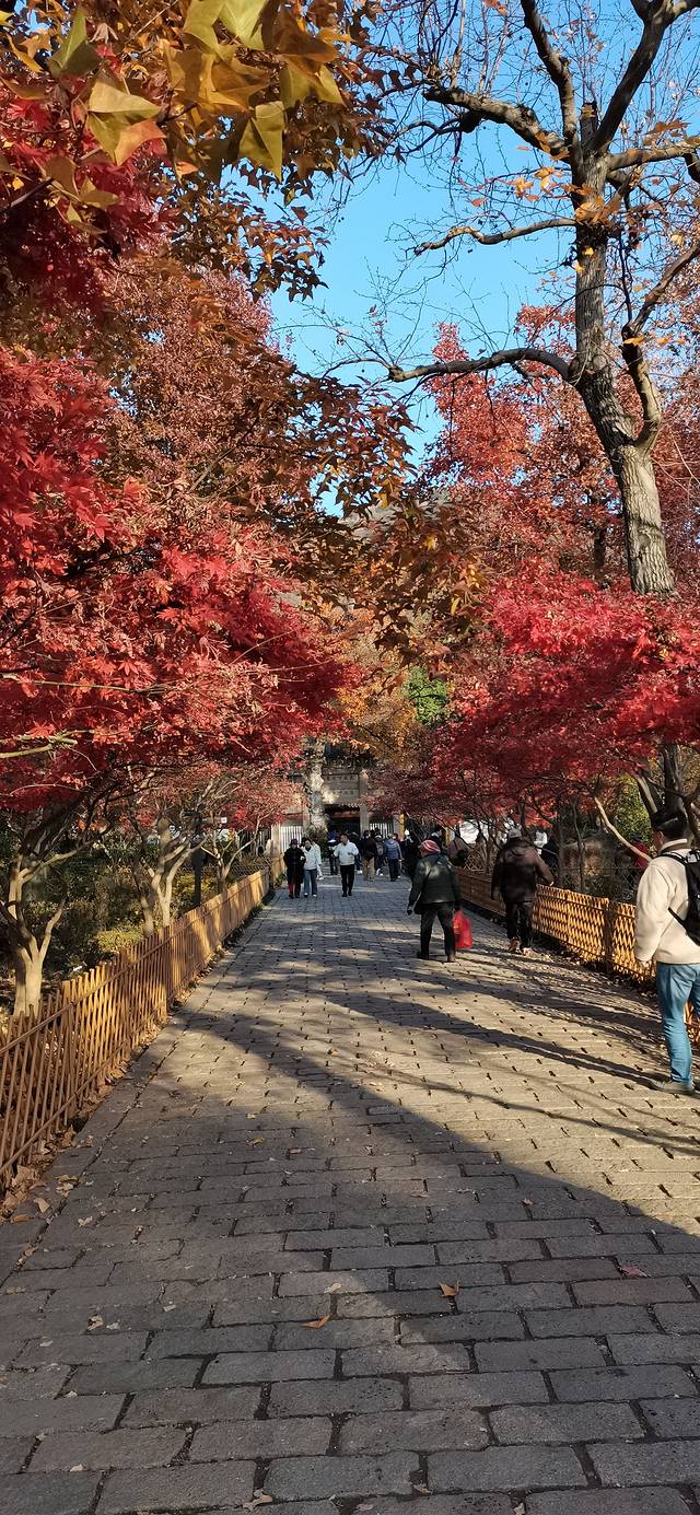 这是在上月下旬来苏州天平山游玩后,在这12月中旬再次来天平山游玩。进入园区,猛然发现上次来时这园区入口处附近的枫叶林还没有全部泛红,只是一部分,今天进入园区发现这入口处的枫叶林道全部变红,满眼的红色一片,非常的美。
