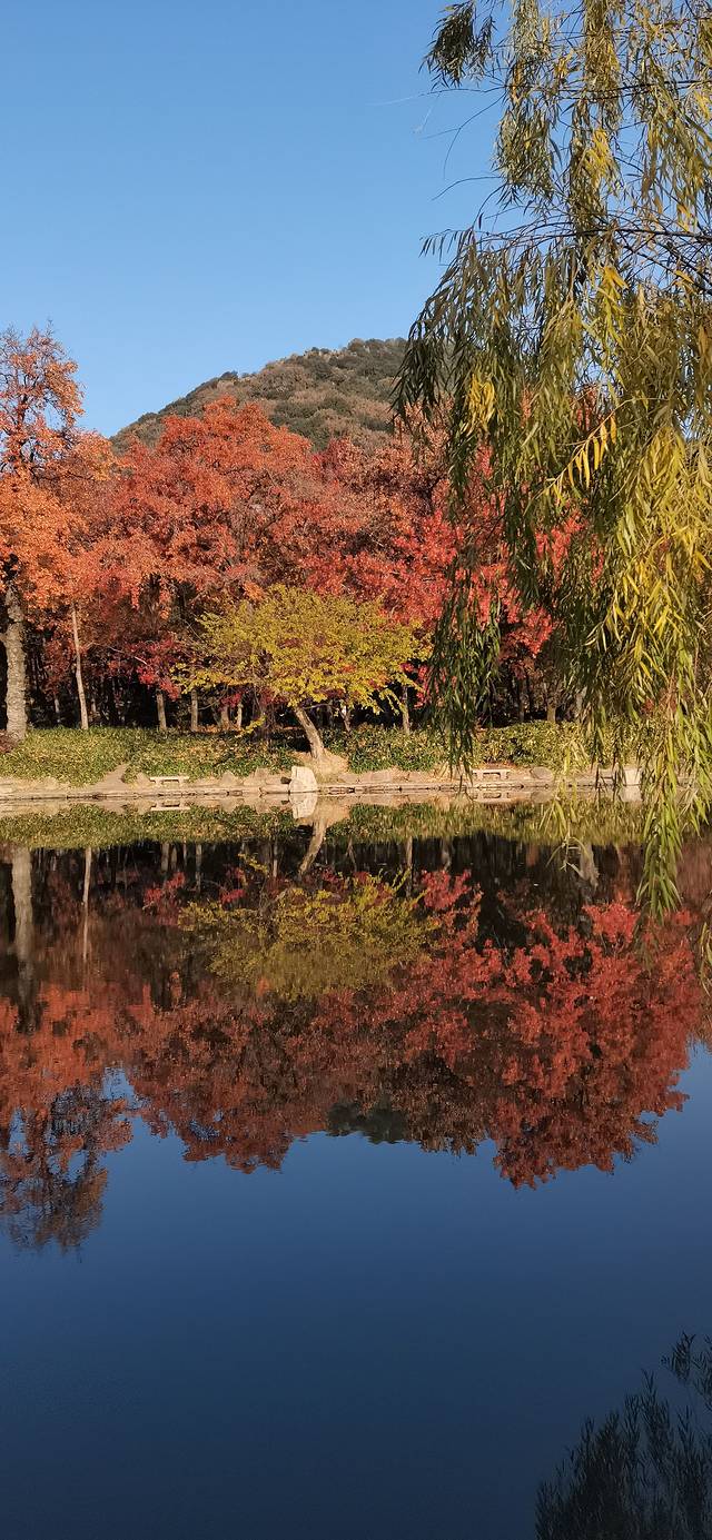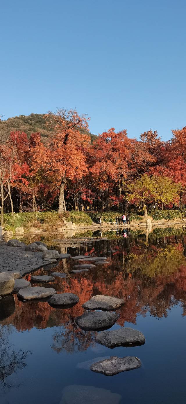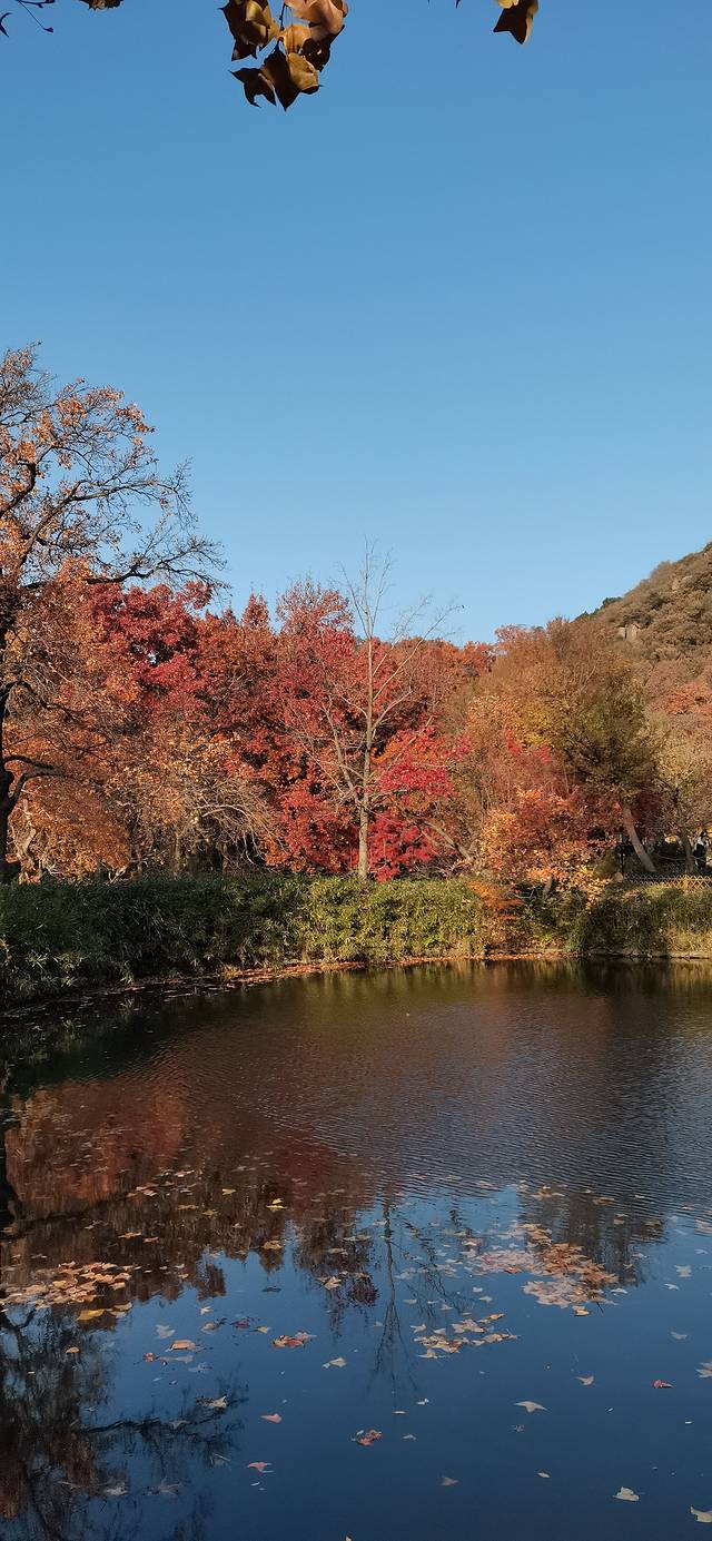 来到池塘边时,发现靠近池塘旁边的枫叶红后大部分己落叶,原本紧贴池塘边的红枫叶己落去,一些拍照的美景地,在失去了红枫叶的衬托,这些美丽的景色也逊色了不少,这也许是观赏枫叶景色的尾声了吧。