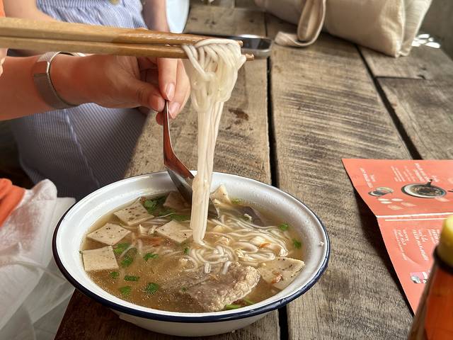 超级推荐,这个粉的口感与国内的口感不太一样,外面像是裹了一层额外的小东西,让粉略带粘性,很Q弹,汤非常鲜美,超级好喝,我们还续了一碗🥣!