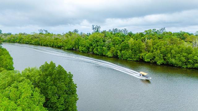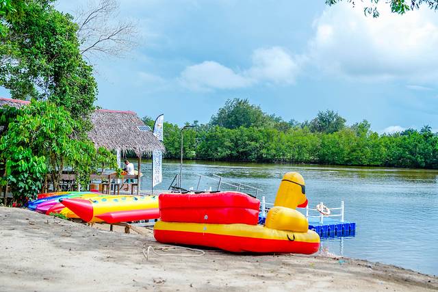 穿越红树林咸淡交界的湖泊河流后方可登岛到达夏日湾