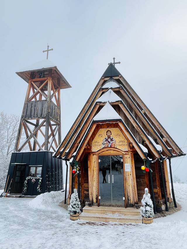 木头村是由塞尔维亚导演埃米尔·库斯图里卡,在 Mokra Gora 山区按塞尔维亚传统式样建立大小木屋围绕典型斯拉夫山区式样的木教堂排列。
