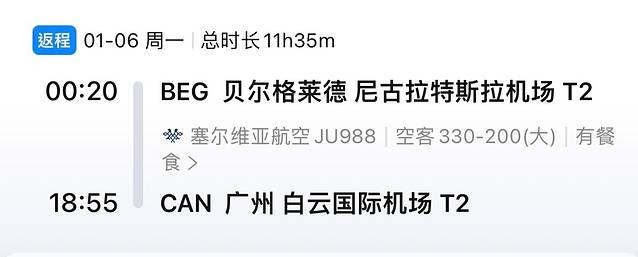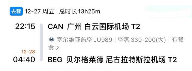 从广州机场乘搭塞尔维亚航空直达它的首都贝尔格莱德,飞行时间约13个小时