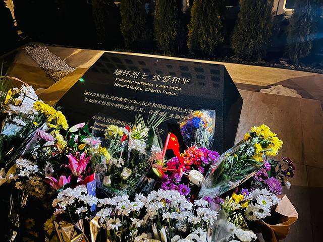1999 年 5 月 8 日 早晨 5 时 45 分,以美国为首的北约 至少使用 3 枚导弹悍然袭击我驻南斯拉夫大使馆。造成 3 人死亡,1 人失踪,20 多人受伤,馆舍严重 毁坏。如今使馆已他迁,遗址已清除,只剩下一个纪念标志,来此祭奠远离家乡的蒙难者。