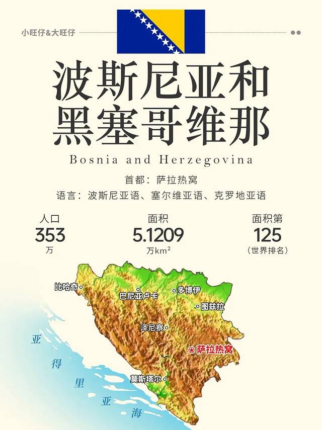 波黑的官方语言包括波斯尼亚语、塞尔维亚语和克罗地亚语。其首都为萨拉热窝,国土总面积为51209平方公里,全国总人口约为353万人,主要民族为波什尼亚克族、塞尔维亚族和克罗地亚族,分别信奉伊斯兰教、东正教和天主教。