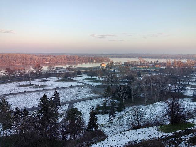 飞机✈️到达贝尔格莱德市机场约凌晨四点多,经过入境安检及取回行李后,登上大巴差不多已经六点,天还未亮,气温是零下-4度。听导游说,我们来得合时,上周这边的天气不穩定,除了下雨之外,还下了几场大雪😰😰,心里马上兴幸改了出发日期😝😝
