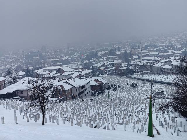 被誉为“一半是城市,一半是坟墓”的萨拉热窝,在冰雪的笼罩下,仿佛又回到了儿时看过的电影 《瓦尔特保卫萨拉热窝》 耳边感觉又响起那熟悉的电影旋律,那个钟楼还在,铁匠街也在,这大概就是我们这一代所谓的英雄情结吧。