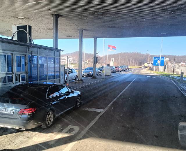 经过两个小时车程,到达了塞尔维亚边境检查站。