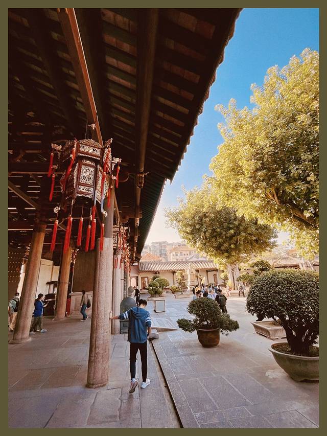 慢慢欣赏里面多次翻修而留存的历史印记,每一栋建筑独具一格的美感。无论是墙壁上砍磨砖雕技艺、还是墙与顶喜欢精细的衔接、亦或是砖与木穿插交错的设计,都十分有特色。园区的树木葱郁与亭台楼阁和合共生,绝美。