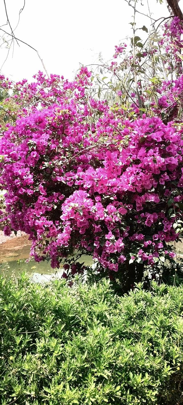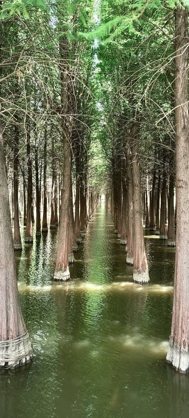 海洪湿地公园是昆明滇池东岸边的一个公园,最佳景象是红嘴雁(红嘴鸥)飞过芦苇随风摆,夏季荡舟水杉林,或晚秋欣赏层林浸染一片红的景色。五一节不前不后只能看少量红嘴雁、看绿色的杉树林、红色的三角梅、淡蓝色的蓝花楹和百子莲花了。