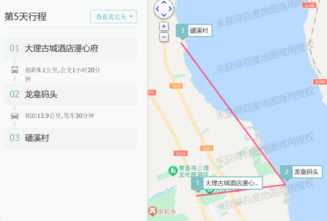 洱海西岸龙龛码头到蟠溪村S形绿道景色最美,骑共享单车大约一个多小时。