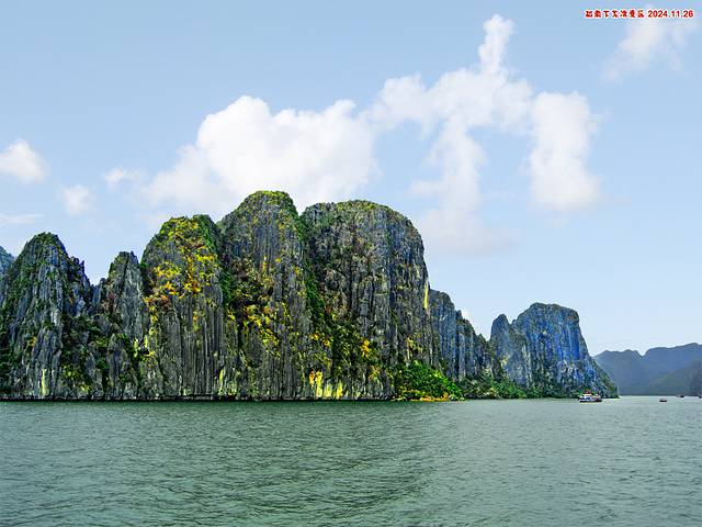 参观完后登船去下龙湾景区。游览中有两项自费项目建议还是要花的。一是购买当地渔船的鱼虾蟹(都是当地小渔船靠游艇出售,一般是拼成一篓出售,可以有限讲价。)在上加工午餐(加工费一般是购买价的20%)。一般需要搭伙购买享用。kap船上提供的午餐已经含在船费中,很简单。二是深度游绝对应该参见。据介绍,非自费深度游的只能到斗鸡石就返航。而斗鸡石才相当于下龙湾景区的大门。参加了深度游项目中有个“欧美线路”是啥意思?有人解释说是外国人喜欢的线路。其实,就是不差钱的人(也包括中国人)要走的线路。值得一游去观赏更多的景色。我们团的深度游项目是个套餐,是不可拆分的。优惠间580元。花几千块钱都来了,不参加深度游一定会后悔。许多奇观美景都在深度游中。