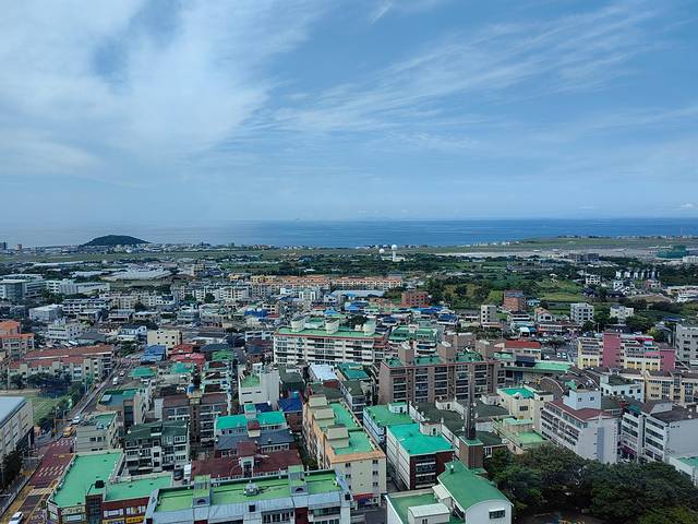 乐天酒店落地窗远视可见济州岛飞机场、大海