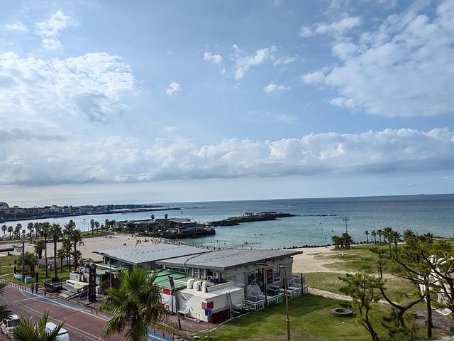 济州岛:韩国济州岛的海很有特色,与我曾经到过的厦门、深圳、茂名、北海都不同,在国内无法体验。1.咸德海水浴场面积不大,放在国内真是太小了,但海水清澈、没啥波浪、海滩干净非常适合游泳、踏浪、晒日光浴、海边野餐。2.柱状节理带海边是悬崖及巨大的黑色柱状石头,没有海滩。海水拍打岩石掀起四五米高海浪,涛声大作惊心动魄。这里只能站在悬崖上远远观看,不可靠近,没有亲水项目。3.月汀里海潮起潮落非常适合冲浪运动,沙滩绵软宽广,适合散步、晒日光浴、野餐。4.涯月海边没有海滩,只有黑色礁石,海浪不大,胆子大的人靠近海水站在巨石上拍照,涯月邑有透明船只供游客租用。5.西归浦海边有四五十米高的正房瀑布、海滩、礁石。6.城山日出峰海拔高度182米,适合登顶观看海上日出,海滩面积最小。7.牛岛是距离济州岛不远的附属小岛,适合岛上租单车环岛骑行。8.汉拿山海拔高度1950米(北岳恒山海拔高2016米),山顶有个湖——白鹿潭,由于海拔高,沿途可以看到各种不同季节的风景。我们由于时间体力都不够没有去。9.生态主题乐园有亲水栈道、花海、雕塑、卡通屋,适合带小孩玩耍。