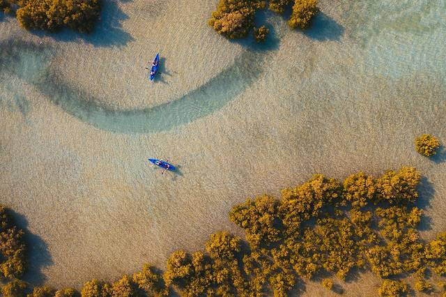 占阿联酋红树林面积近75%的红树林国家公园(Mangrove National Park),是一处隐秘的世外桃源,也是寻求宁静与平和的理想去处。你可以穿行于盐沼、泥滩和茂密红树林之间,感受丰富的生物多样性;或泛舟水上,徜徉于林间,真正与自然融为一体。