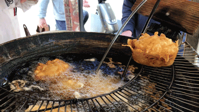 嘉定油墩子:传统的油炸小吃,外酥里嫩,香脆可口,制作过程虽不复杂,但味道十分美味 。