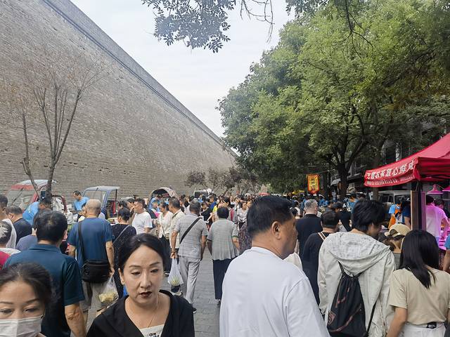 考虑到地铁出行更方便,将酒店选择在1、2号线交汇的北大街地铁站,原本是想选择钟楼地铁站,结果被网友劝退了,说从钟楼地铁地面下到站台乘车需要走很长一段路,不方便。一大早就去城墙边的早市,人太多了,有点水泄不通的感觉,买了一点小吃食,穿过重重的人流,好不容易走到含光门才搭到车。