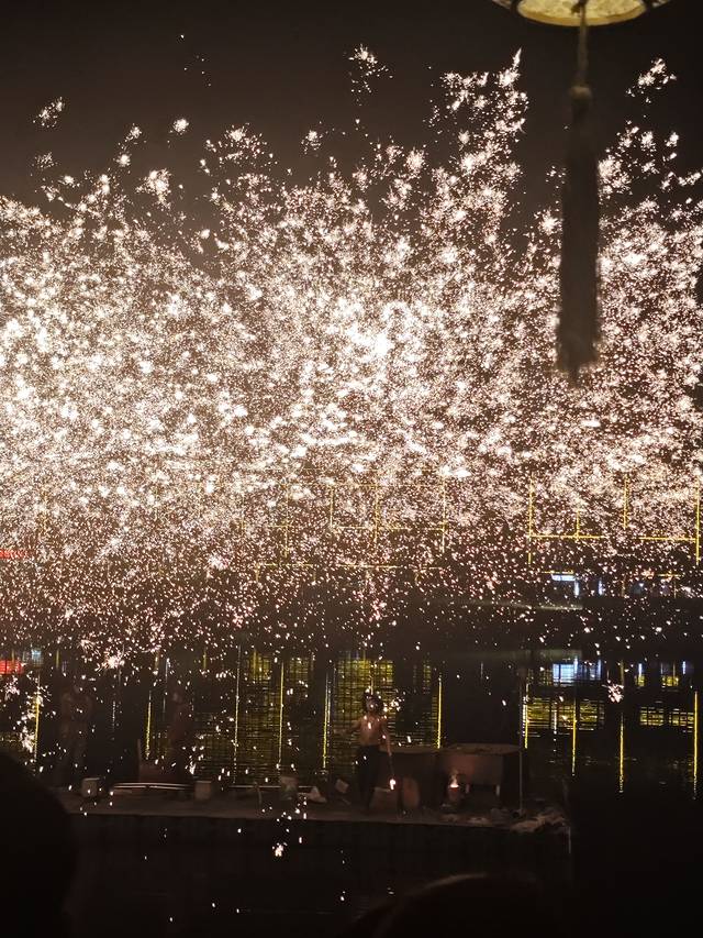第一天到了我们的酒店在衡山山脚下,然后先去南岳里看打铁花,人非常多,我估计南岳区的人都在这了