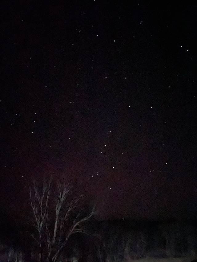 今夜的星空比昨晚还要好,昨晚上时不时的还会有云挡住星星,今天晚上完全没有浮云,满天的星星毫无遮挡地铺在天上,好像离我们地上的人又近了好多,连手机都能清晰地拍出北斗七星。