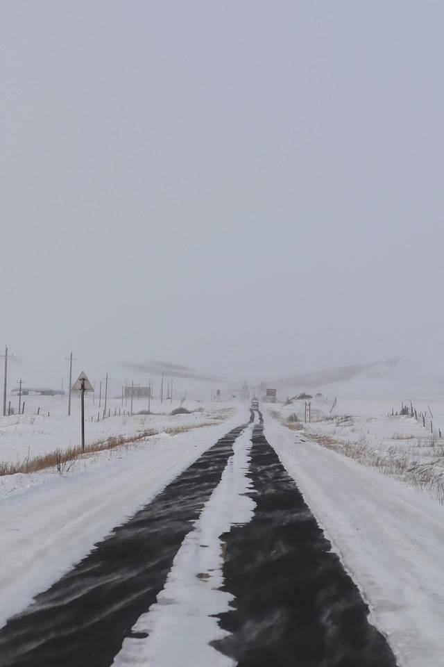 越野车在一片黑与白中行驶,黑的是暗夜,白的是道路两边堆起来有半车高的冰堆,还有草原上的寒风吹起白雪,刮起在车前翻滚的白毛风。